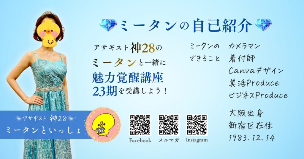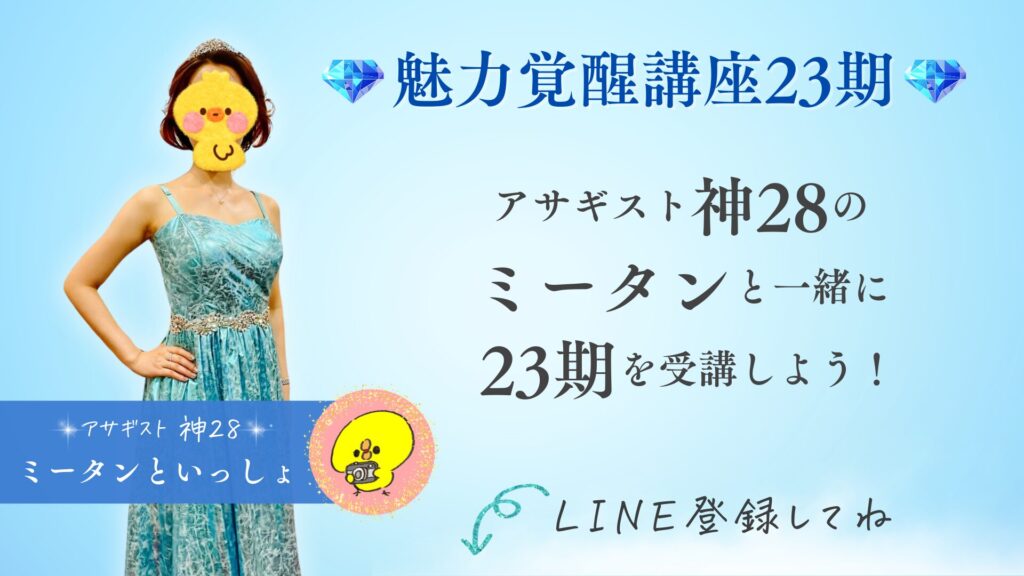 小田桐あさぎ主宰【魅力覚醒講座23期】2026年3月18日募集開始!ミータンと一緒に覚醒しよう♡
