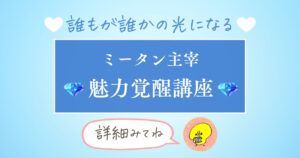 ミータンは21期を卒業してるから、ミータンが主宰の【ミータンの魅力覚醒講座】を受けると、あなたも【魅力覚醒講座】を開講できるよ